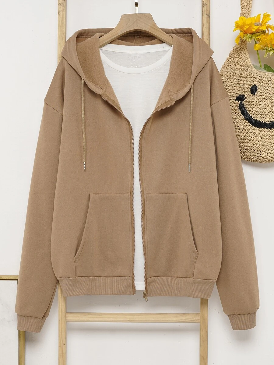 Zip Up Drawstring Thermal Lined Hoodie