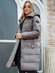 ZIAI Zip Up Dual Pocket Fuzzy Trim Hooded Winter Coat