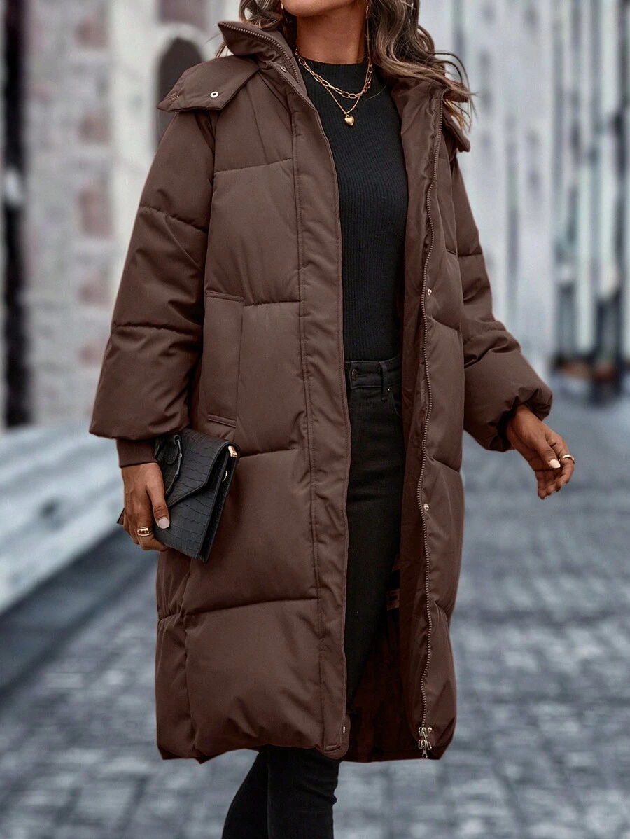 SHEIN LUNE Zip Up Snap Button Hooded Puffer Coat