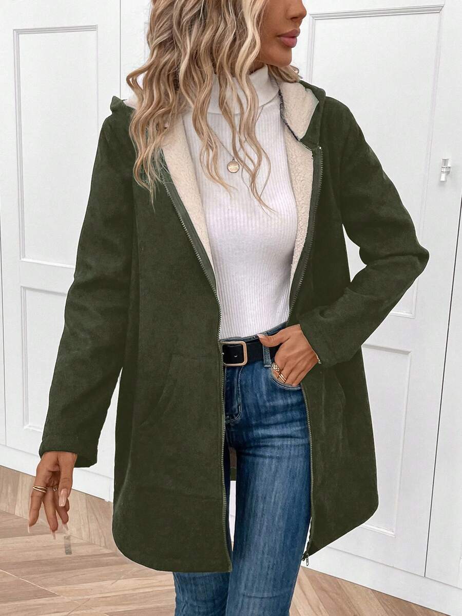 SHEIN LUNE Zip Up Teddy Lined Hooded Coat