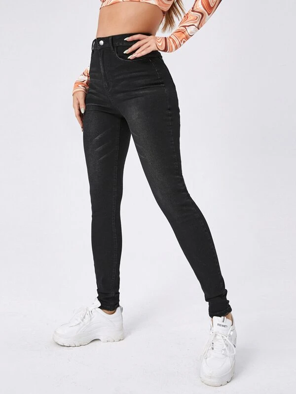 SHEIN Essnce Zipper Fly High Waist Skinny Jeans