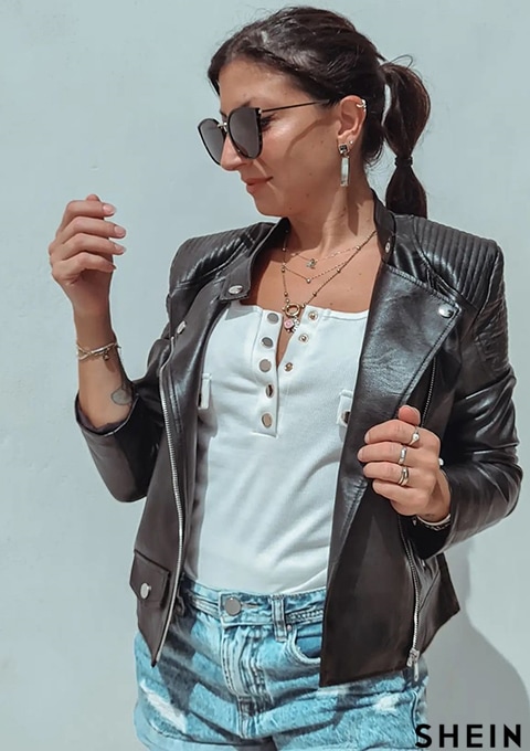 SHEIN Essnce Zipper Front PU Moto Jacket