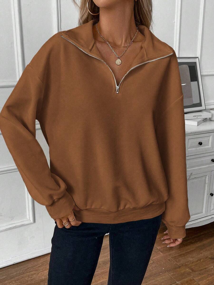 SHEIN LUNE Zipper Half Placket Long Sleeve Sweatshirt