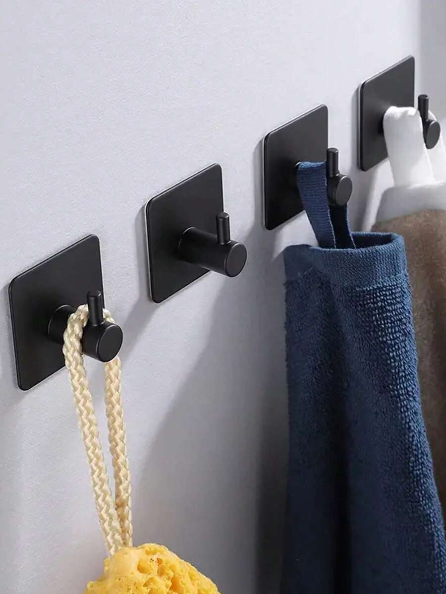 [1pc] Black L-shaped Self-adhesive Towel Hook, Clothes Hook Suitable For Hanging Coats, And Towels In Bathroom, Multifunctional Wall Hook