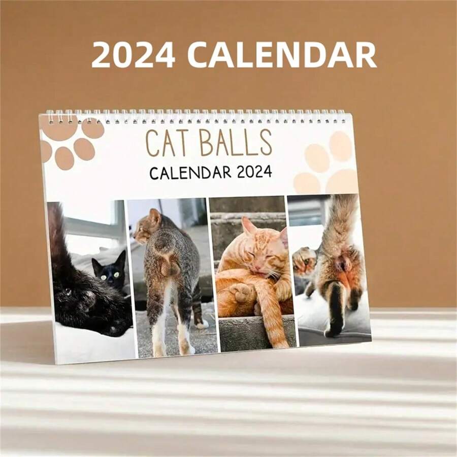 [Four Cats Butt Calendar] 1 Set 2024 Funny Cat Butt/Balls Calendar, A Must-Have Gift For Cat Lovers, Suitable For Home Or Office Decoration And As A Fun Gift For Friends