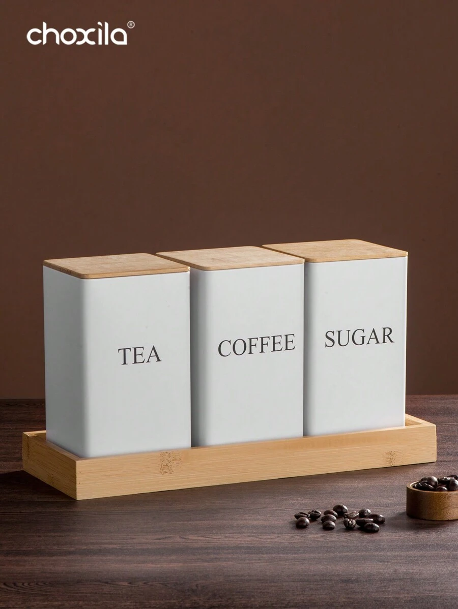 choxila 1pc Coffee Storage Can Tea Snacks Coffee Bean Storage Can Bamboo Lid Iron Art Display Square Can