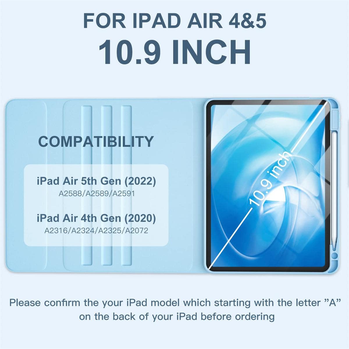 iPad Air 5th 4th Generation Case with Keyboard 10.9 Inch, Slim Smart Folio Keyboard Cover with Pencil Holder for iPad Air 5th Gen 2022/Air 4th Gen 2020, Detachable Backlit Wireless Keyboard
