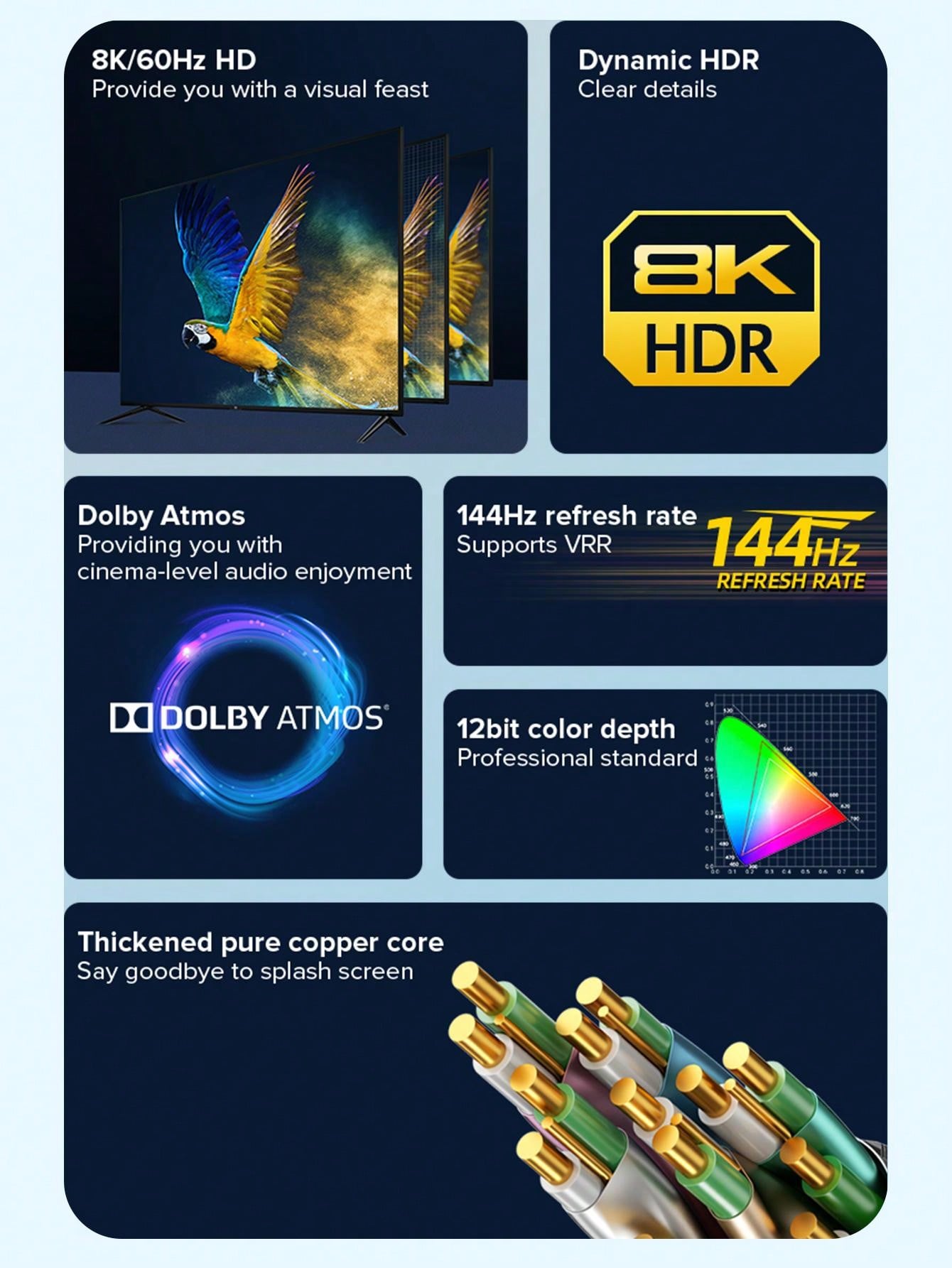 LLANO llano 8K HDMI Cable 2.1 HDMI to hdmi Cable 60hz/144hz Ultra High Speed Transmission Cable HDR Cable For HDTV PS5/PS4 pro Switch Xbox